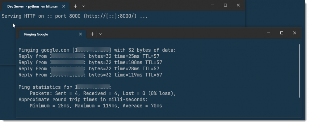 START "Ping Google" cmd /k "title Pinging Google & ping google.com"