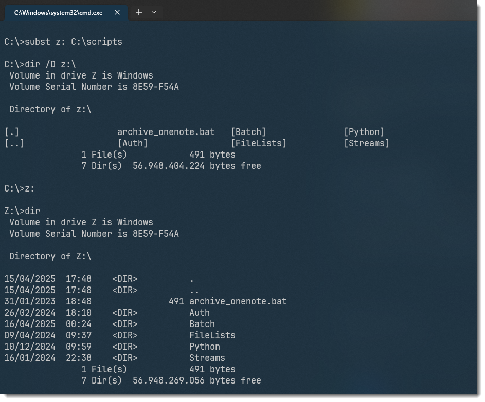 SUBST Z: "C:\scripts"